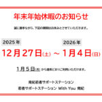 誠に勝手ながら、12/27(土)~ 1/4(日)はお休みとさせていただきます。1/5(月)から通常どおりご利用いただけますので、どうぞよろしくお願いいたします。 ※新宮サテライト・串本サテライトに関しても、上記と同様の日 […]